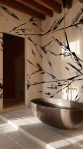 Rousseau M2502-1 is a nature design in black and white tones from the Méditerranéen collection.