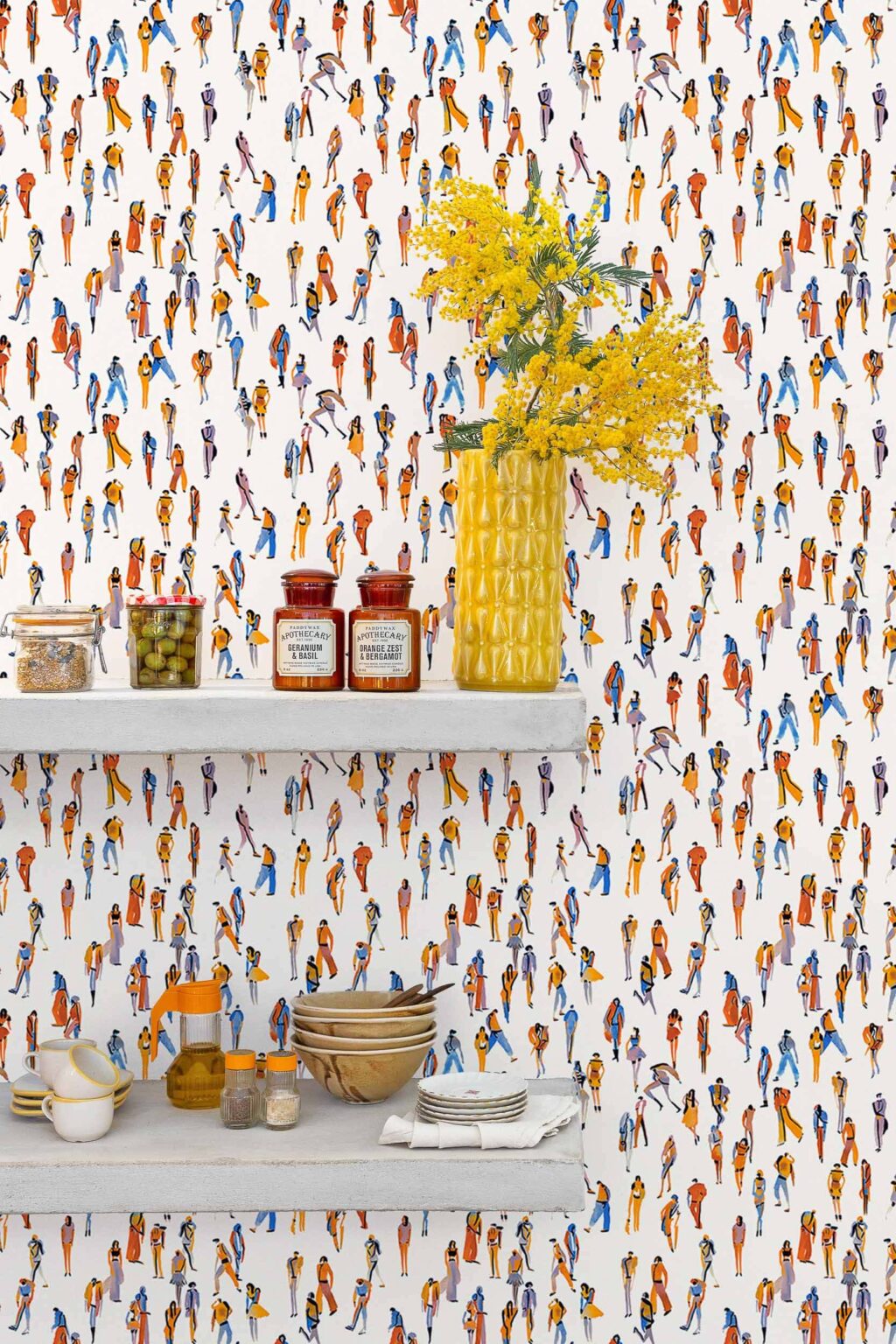 Tres Tintas’ Unique people EF4901-1 wallpaper is a people design in white/grey tones from L’Enfant Terrible collection. Cool people enjoying a spring walk.