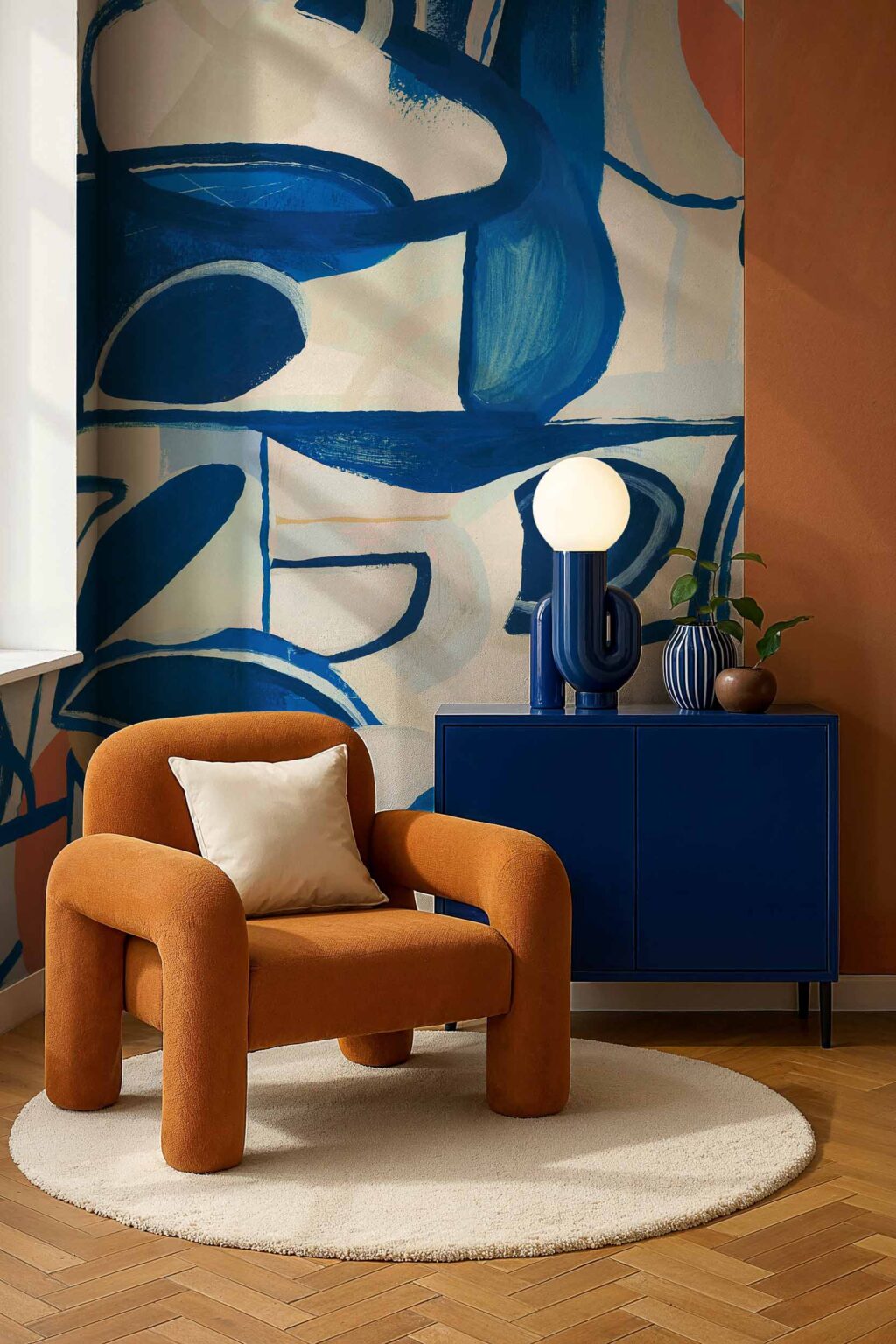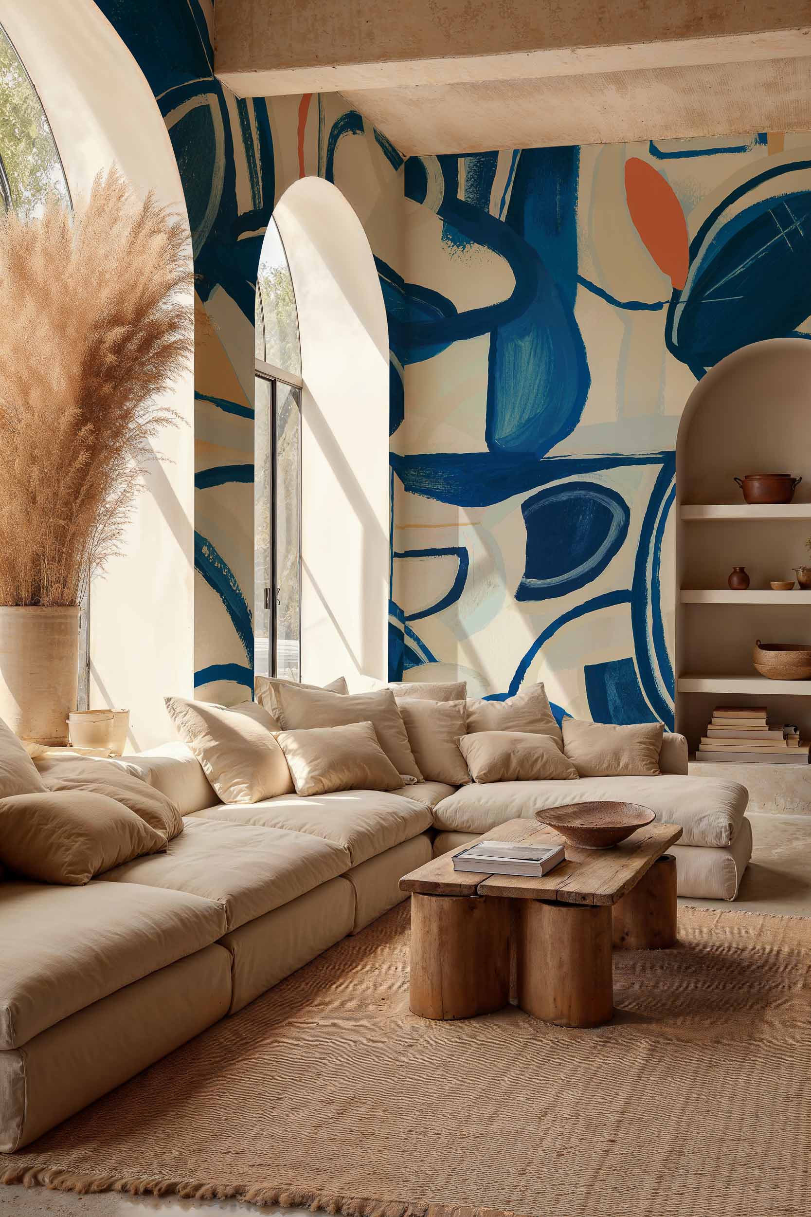 Tres Tintas’ Giant Abstract M4905-1 wallpaper is a geometric design in blue/navy tones from L’Enfant Terrible collection. Impulsive gestures painting what is on the other side of my window.