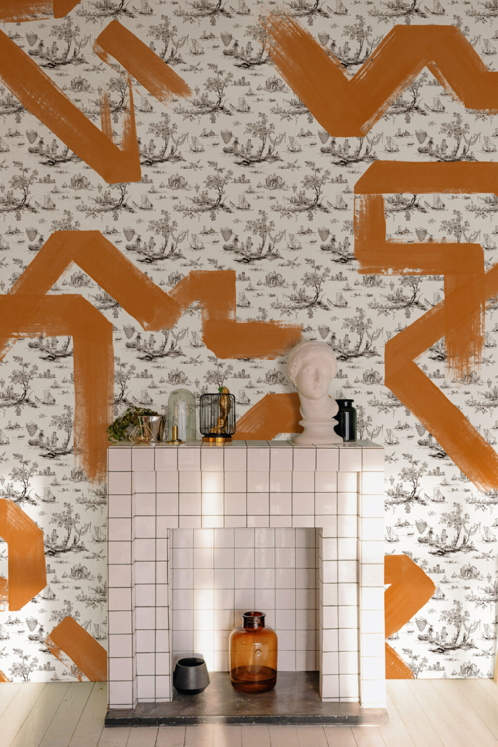 Bold intervention of giant brush strokes: Marine toile + Brush strokes in oil.
