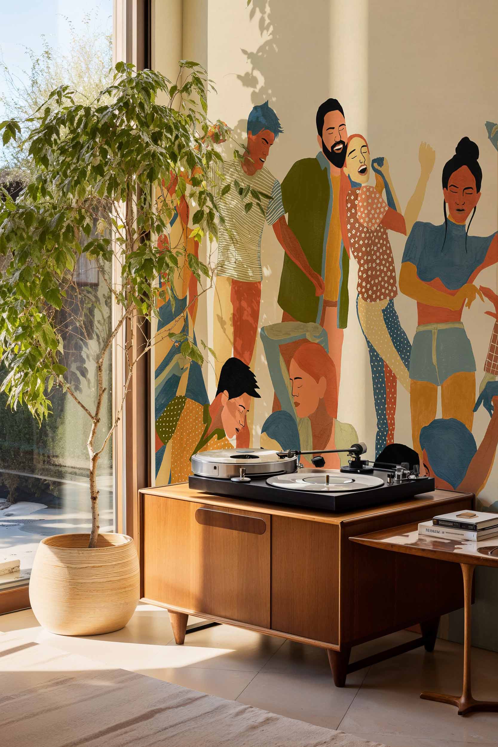 Every spot hides an applause and every shadow, a forgotten verse. It is an invitation to cover your walls with a transgressive positivism where you can almost hear the clinking of glasses raising a toast to today and all that there is to celebrate.