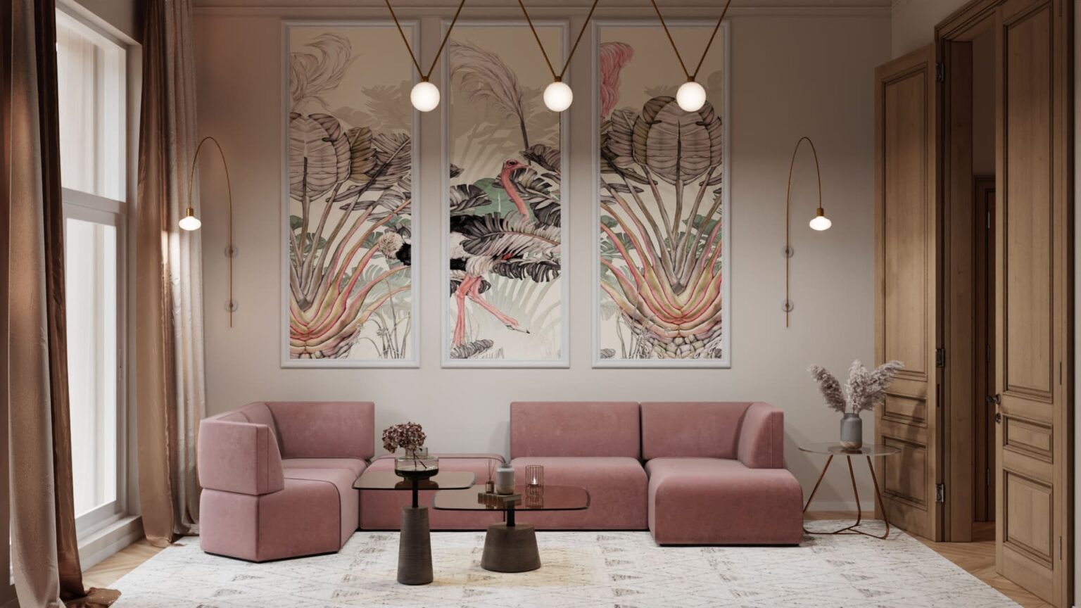 Verso M3402-2 is a nature design in pink tones from the Rúbrica collection. Composition of simple and suggestive units that build and illustrate a story capable of complementing,unify and decorate.