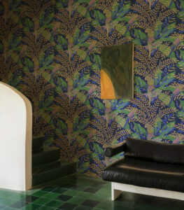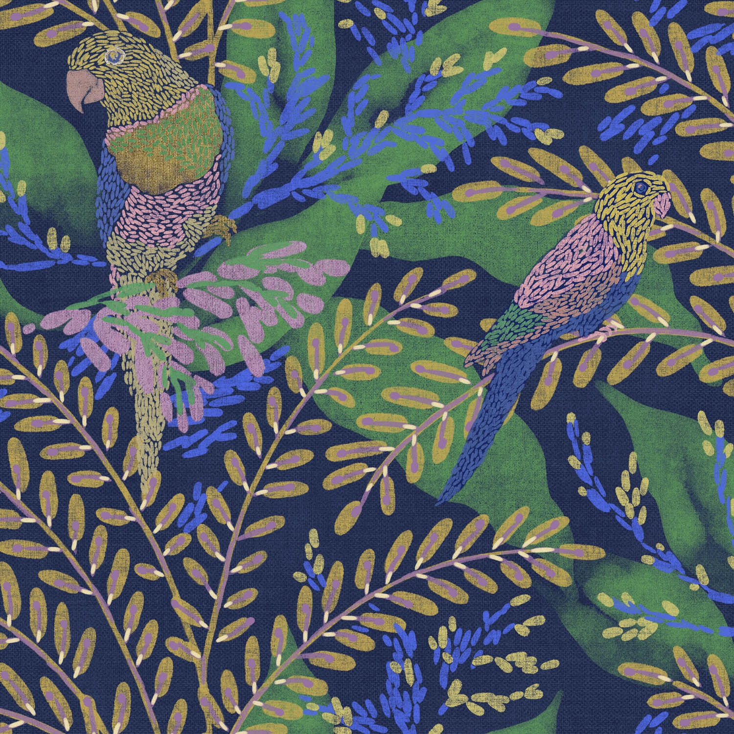 Tres Tintas’ Guacamayos Cobalto is an Animal design in Blue/Navy from the Bossa Nova collection. A carnival of birds. With their striking plumage, parrots create a symphony of explosive colours that blend seamlessly into the jungle landscape.