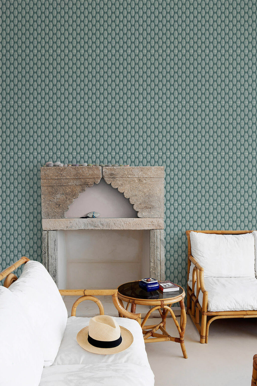 PINYOL LL3102-5 is a patterns design in green tones from the Llaüt collection. Take an infinite deep breath, stretched out in its shadow. Close the eyes. Open universes. Dream that it is forever, in peaceful intimacy. And feel the breeze inside a shell that smells like green pine and home.