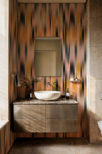 Tres Tintas’ Speed Candy is a striped design in pink/lilac from the Urban Tribe collection. “Lines of light”. Blurred effect caused by the fast movement of cars.