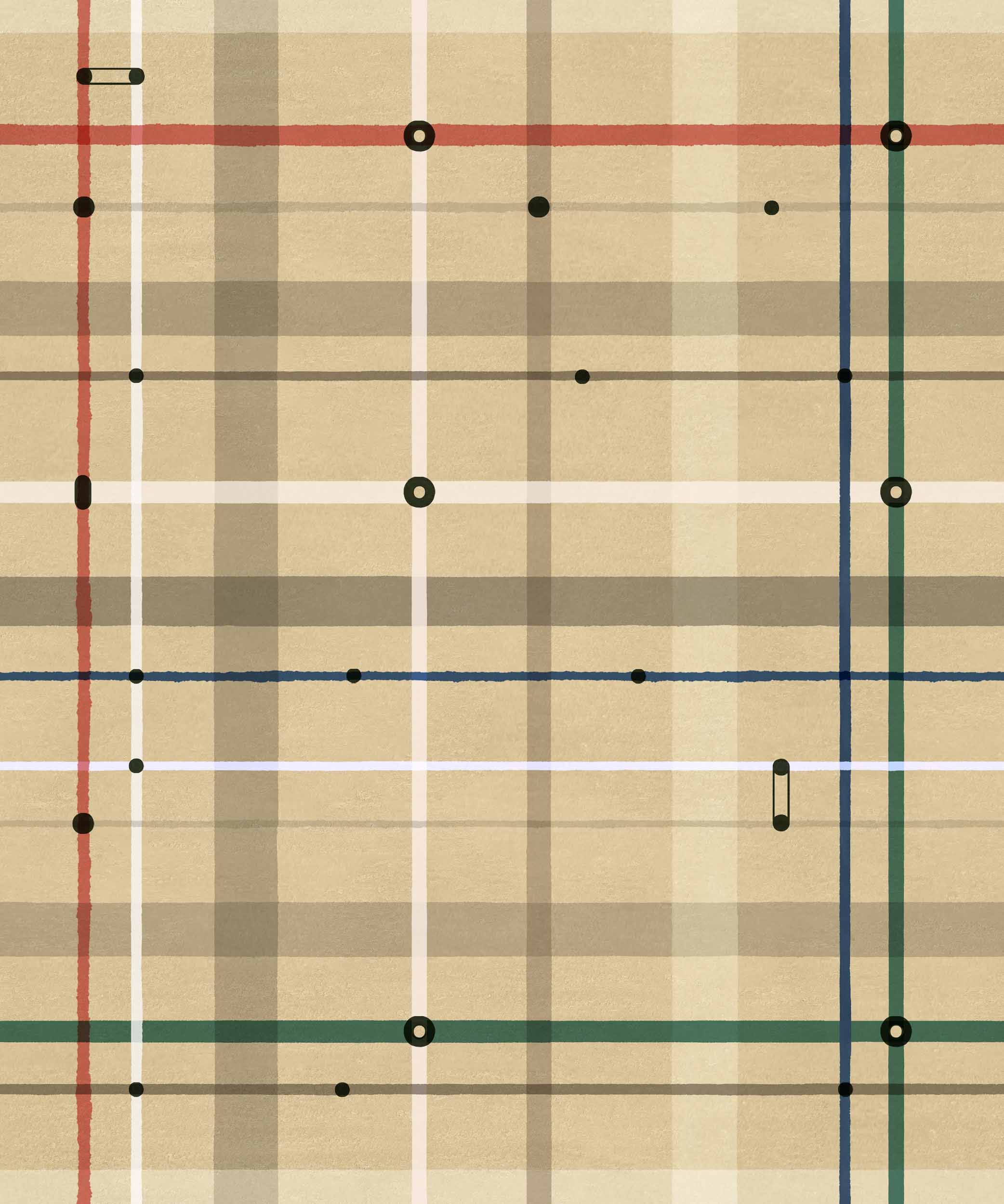 Tres Tintas’ Subway Copper is a map design in yellow/orange from the Urban Tribe collection. “The chaos underground”. Underground lines that intersect, creating an avant-garde tartan design.