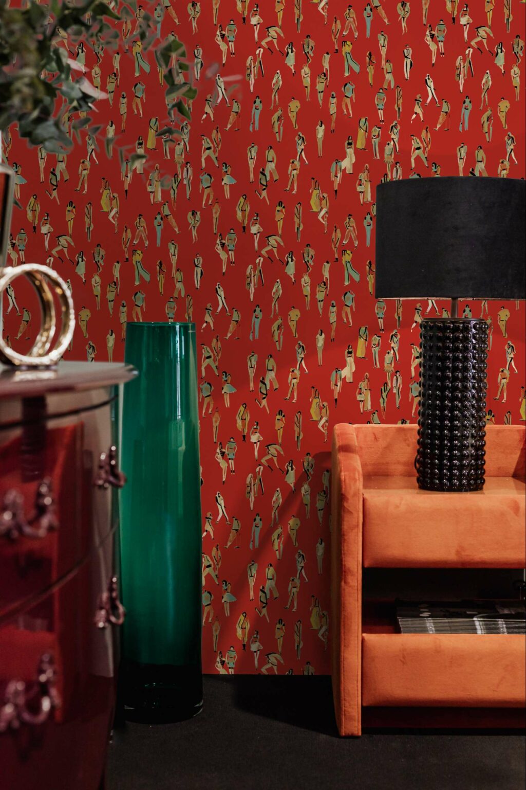 Tres Tintas’ Unique people EF4901-2 wallpaper is a people design in red/wine tones from L’Enfant Terrible collection. Cool people enjoying a spring walk.