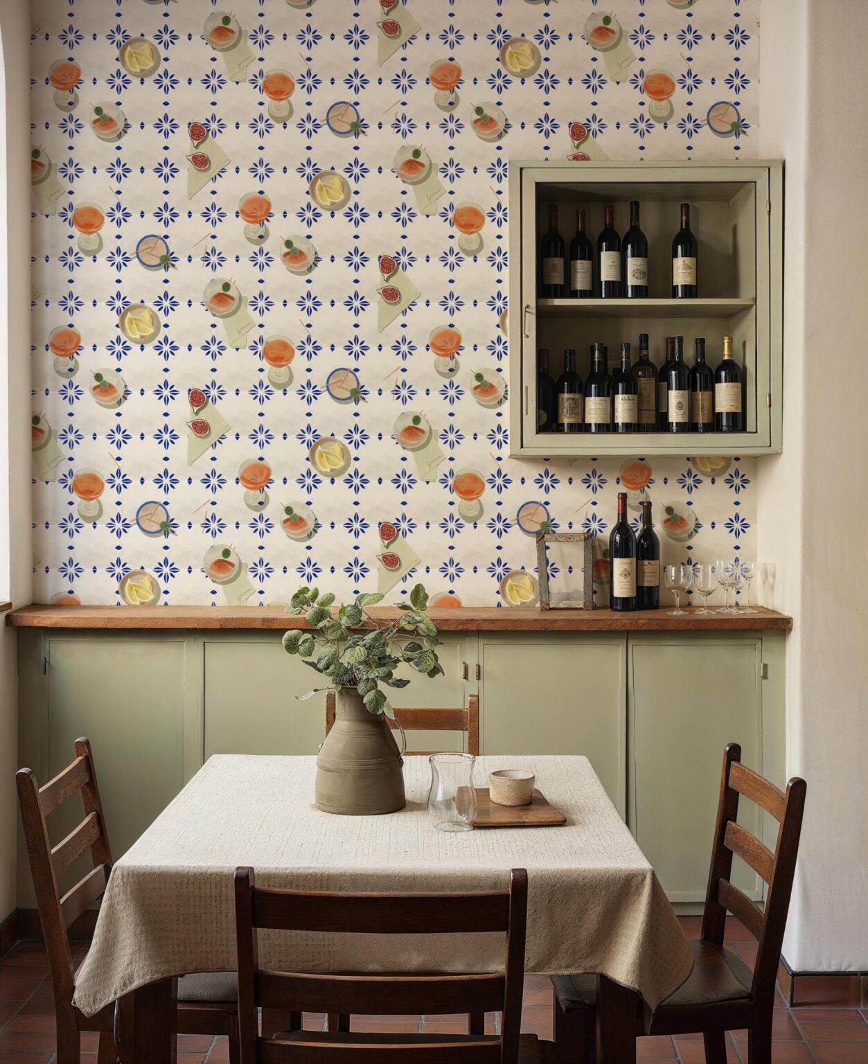 Tres Tintas’s Vermut Cobalt is a Objects design in Blue/Navy from the Solera collection. The bridge between generations of grandparents and young people, capturing the perfect mix between bitter and sweet, served in glasses that capture the sunlight. Bold olives accompanied by a slice of orange as a prelude to a delicious plate of tapas.