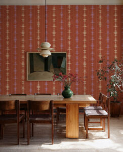 Tres Tintas’ Vibes Brick is a striped design in red/wine from the Urban Tribe collection. “Urban pulse”. The acoustic language of cities generates abstract musical scores.